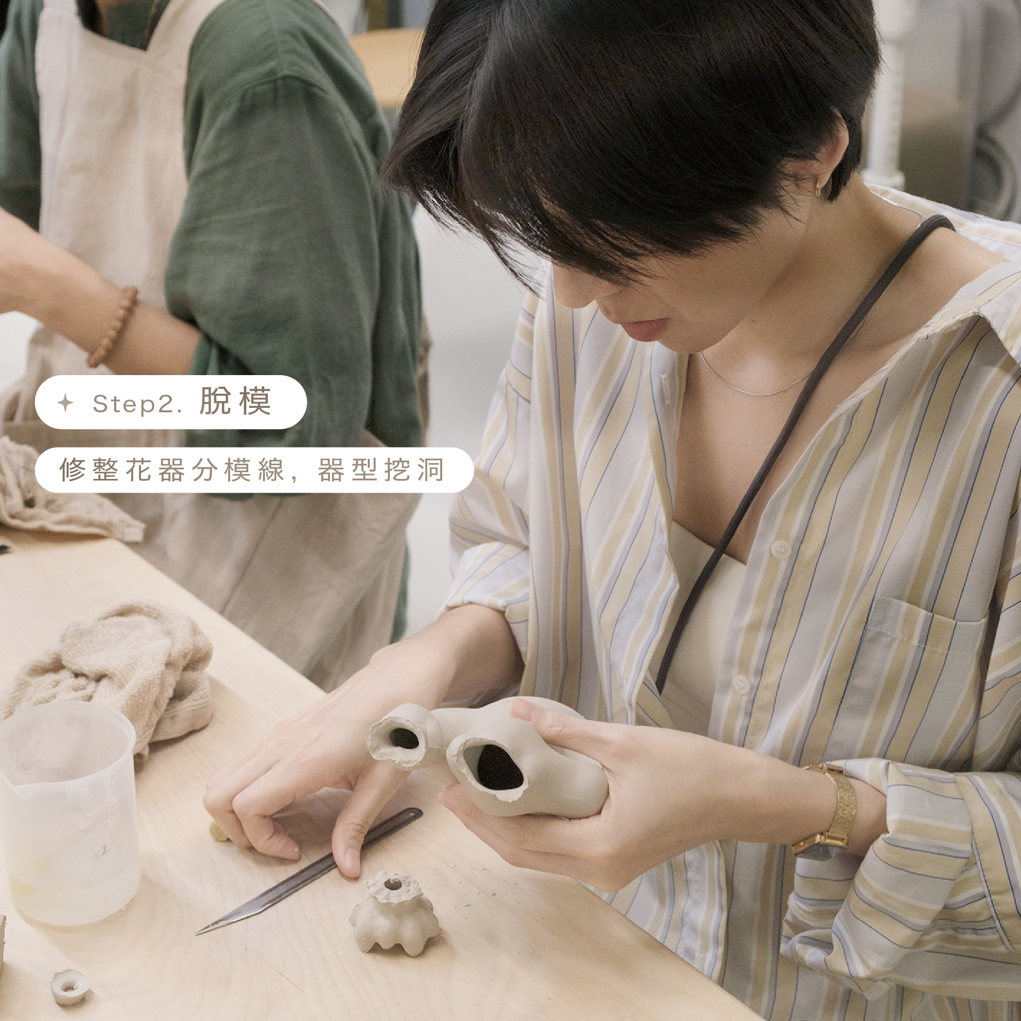 本課程結合 注漿陶藝 與 手捏陶藝 兩種製陶方式,適合希望放慢步調、完全沈浸在一日陶藝體驗中的學員。